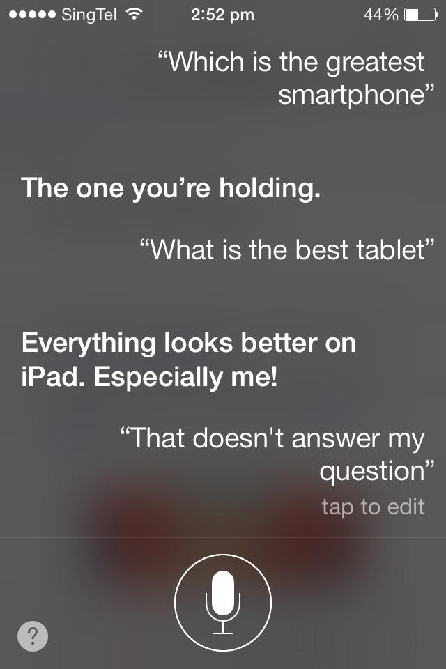 Of course, Windows Phone does not have a voice assistant. Pressing and holding the start button will bring up Microsoft Tellme, which allows you to summon apps or make calls with your voice, but that’s about it. Siri on iOS 7, on the other hand, is a joy to use (and mess around with). Not only is it useful for searching stuff on the net, but she (now a he) has a wonderful sense of humour. The good news is that Microsoft is supposedly working on a similar voice assistant called Cortana (yes, named after Master Chief’s beloved AI from Halo).