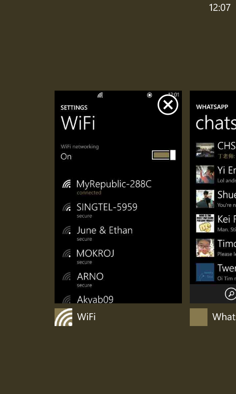 There are still some issues that Microsoft has to iron out. Sometimes the app icons don’t appear (such as whatsapp on the picture on the right), and transitioning from the multitasking screen to the start screen by pressing the start button gives a jerky animation (unlike iOS). However, the GDR3 build that I am on isn’t the official release, so hopefully Microsoft will get these issues resolved on the official update.