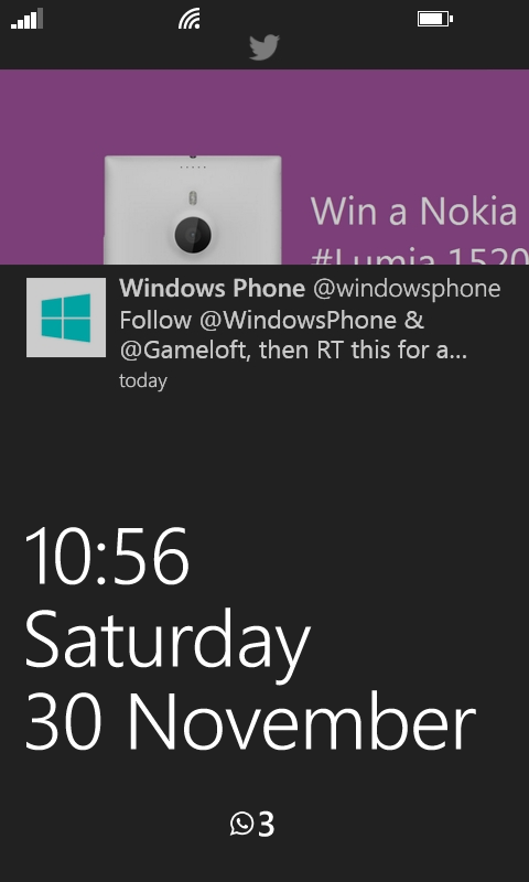 On Windows Phone, the lockscreen is simple, yet useful. No fancy lockscreen widgets like on Android. You can add up to 5 app notifications at the bottom (email, messages, whatsapp, etc.) and choose one app to show detailed information (selecting the Calendar app will have the lockscreen display your upcoming events). The screen also displays the date and time prominently on the bottom, and the status bar at the top (battery, cellular signal, etc.) Other than that, you can also select the background of the lockscreen from several preset background images, or a photo from your album. Certain apps such as Facebook can also be chosen as the background image. Choosing Facebook will display a slideshow of your albums on the lockscreen, while Twitter will update the lockscreen background with the most recent tweet.