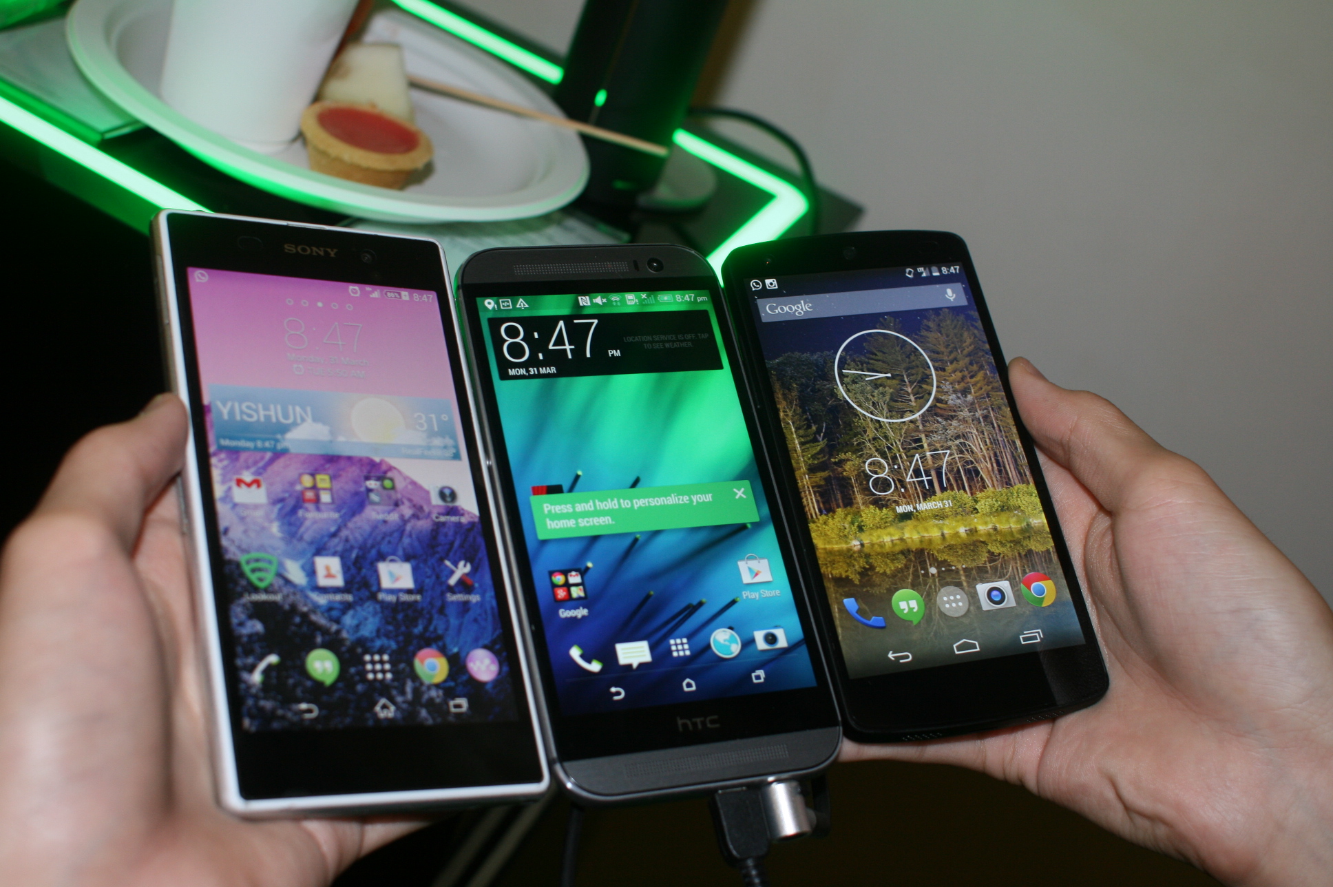 | HTC One M8 | LG G Pro 2 | Xperia Z2 | Galaxy S5 | |