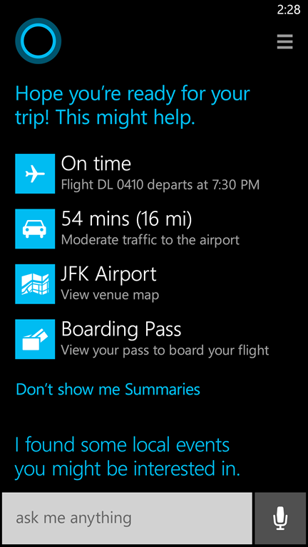 “Powered by Bing, Cortana is the only digital assistant that gets to know you, builds a relationship that you can trust, and gets better over time by asking questions based on your behavior and checking in with you before she assumes you’re interested in something. She detects and monitors the stuff you care about, looks out for you throughout the day, and helps filter out the noise so you can focus on what matters to you.”