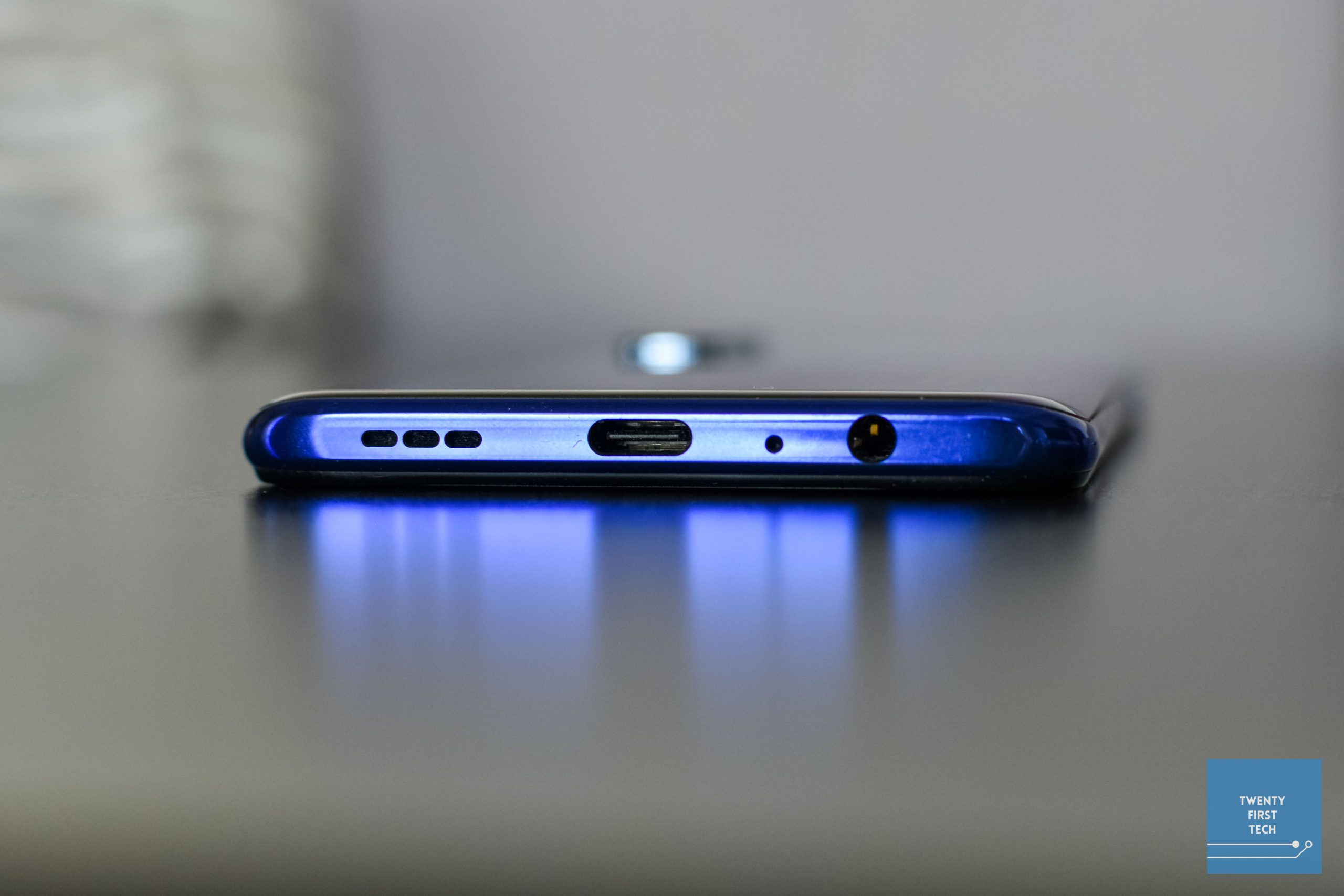 For a plastic phone, build quality is solid. The unit that I have is the Auroral Blue, and its back is reminiscent of the colourful glass that you see on most phones these days. It looks great. There’s a shift in hue diagonally from the top left to the bottom right, which is a subtle but neat touch.